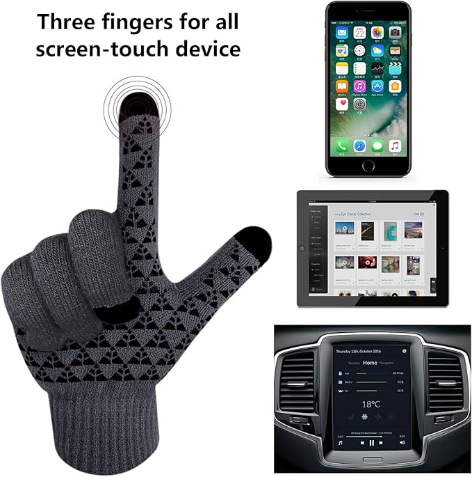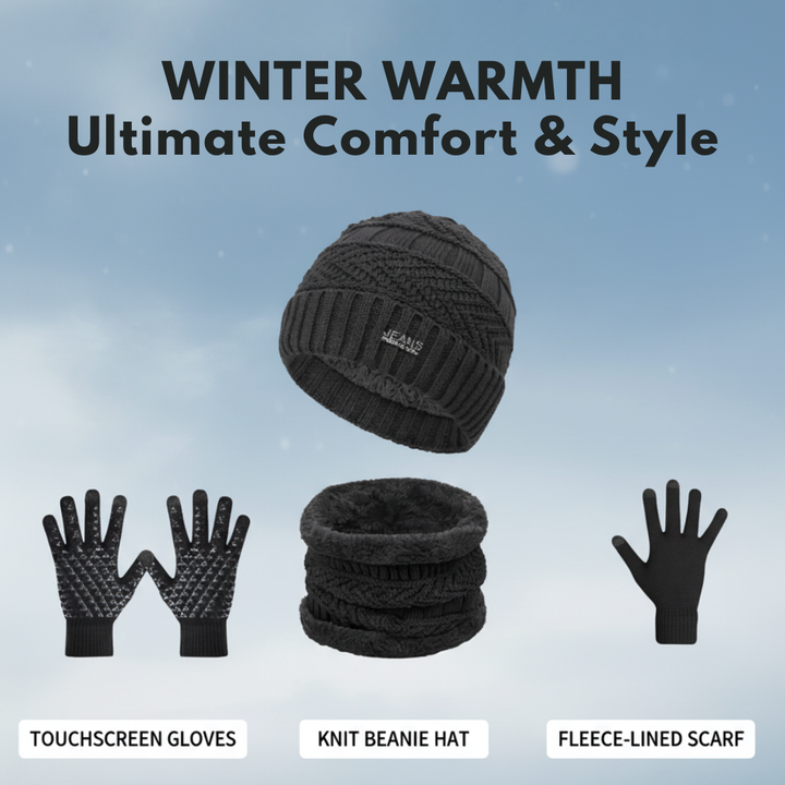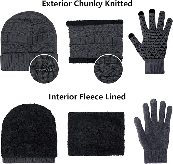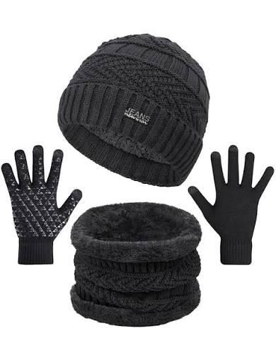 3 PCS Winter Beanie Hat, Scarf and Touch-Screen Gloves Set for Men and Women Knit Cap Neck Warmer Mitten