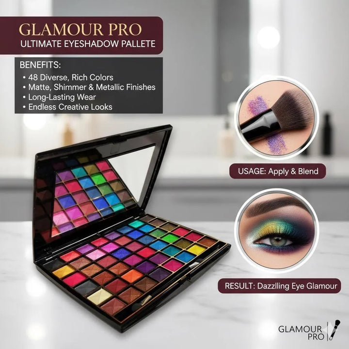 • Material: Solid• Product Feature: Smudge Proof, Matte, Absorbent, Enhances Or Changes Eye Color• Package Includes: 1 x Eyeshadow Palette• Ultimate Color Range (48 Shades): Offers a massive selection of coordinated colors, eliminating the need for multiple palettes.• • Superior Pigmentation: Each shadow delivers rich, true-to-pan color with minimal effort.• • Multi-Finish Formula: Includes a perfect mix of velvety mattes (for depth/crease) and radiant shimmers/metallics (for lid highlights).• • Effortless Blending: The soft, silky texture ensures seamless color transition and a truly professional finish.• Note: Before using any new cosmetic product, perform a patch test on a small skin area. Verify ingredients for allergies and follow package warnings and directions.