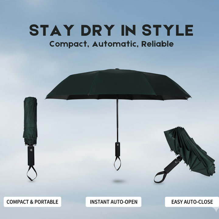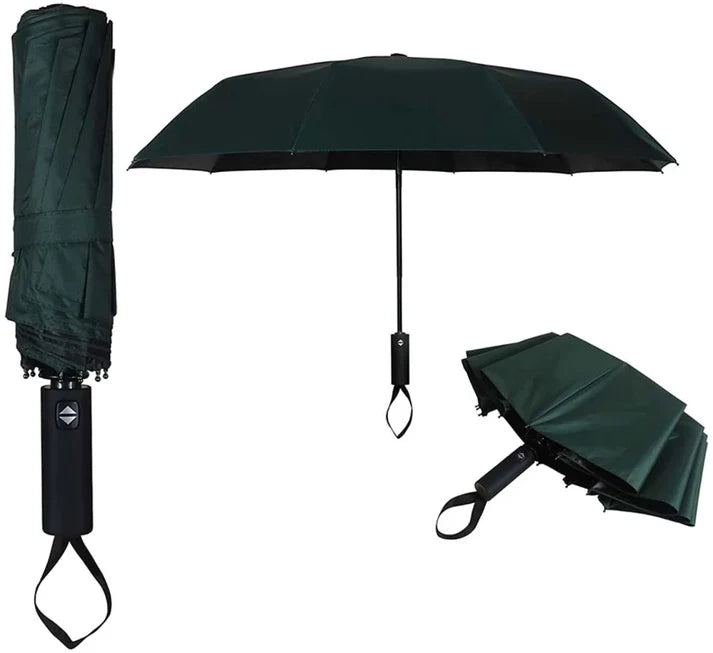 Automatic Open-Close Folding Umbrella - Windproof, Rainproof & Compact (Bottle Green)