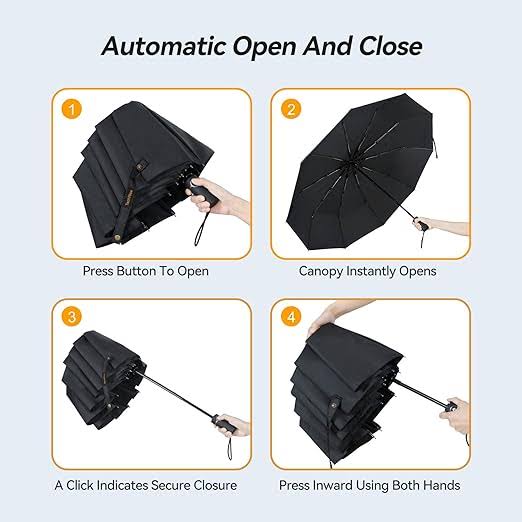 Stay dry in style with our Automatic Open-Close Umbrella, a perfect blend of sleek design and everyday functionality. This windproof, water-resistant umbrella is designed to withstand unexpected downpours while offering quick, one-touch operation — ideal for on-the-go commuters, travelers and anyone needing reliable rain protection.